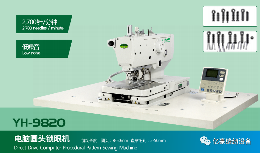 主营产品:电脑套结机/钉扣机、直驱式电脑花样机、电脑圆头锁眼机、直驱式双针电脑平缝机、辘脚机、免烫自动贴袋机、小嘴型电子花样机(牛仔裤补破洞机)、电脑自动帽檐机、激光开袋机、文胸背扣机、全自动接橡筋机。